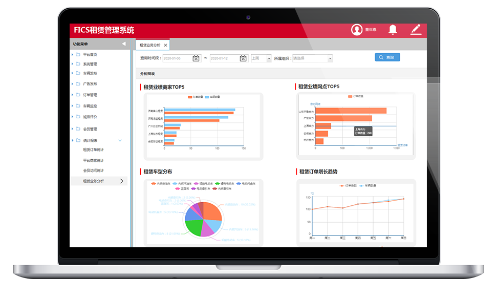 廣告發(fā)布管理、租賃訂單管理、車(chē)輛遠程監控。